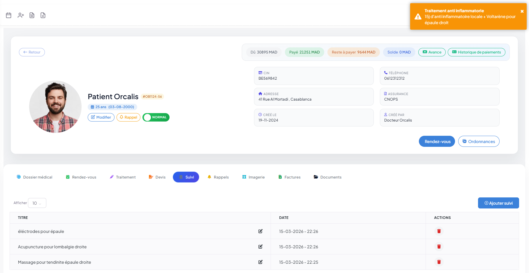 Gérez vos plans de traitement, imagerie dentaire et rappels de contrôle dans un seul outil.